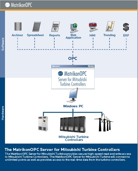 The MatrikonOPC Server for Mitsubishi Turbine provides secure high-speed read and write access